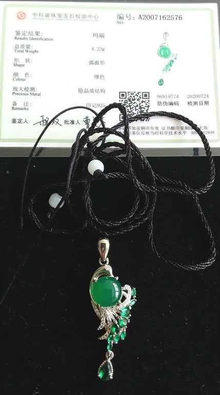 CERTIFIED CHINESE GREEN JADE SWAN 925 SILVER PENDANT NECKLACE Condition: Good - Refer to Images 0162945+20FC
