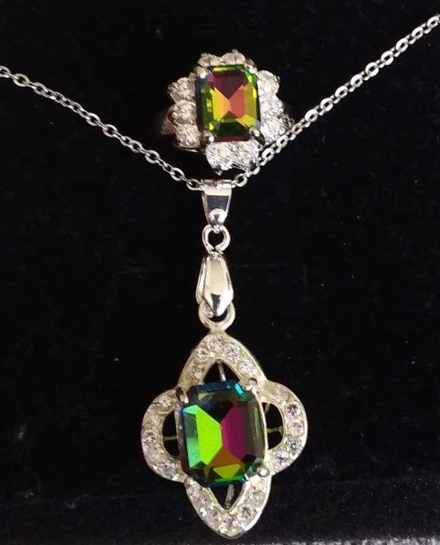 SILVER MYSTIC RAINBOW TOPAZ CRYSTAL NECKLACE AND RING Condition: Good - Refer to Images 0162945+31FC