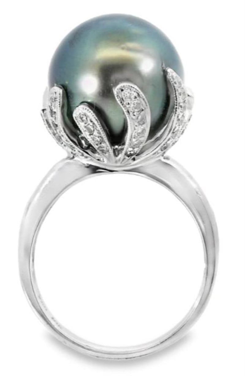18CT WHITE GOLD TAHITIAN PEARL & NATURAL DIAMOND RING
