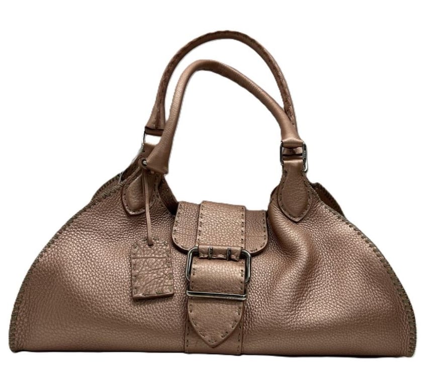 FENDI VINTAGE SELLERIA SPORTY SHOULDER BAG. Rose Gold Calfskin Leather, Silver-Tone Hardware, Fold Over Magnetic Closure, 2 Top Handles, Hanging Fendi Tag And Internal Zip Pocket. Made In Italy. Comes With Certificate Of Authenticity. Condition: Good - Refer To Images 162942+35854