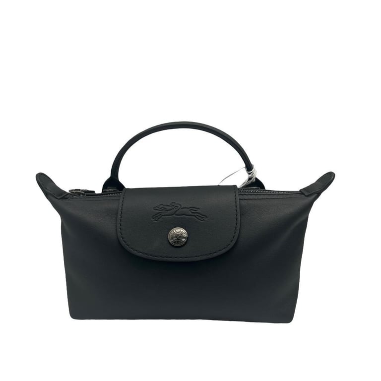 LONGCHAMP LE PLIAGE XTRA SMALL POUCH.Nlack Leather With Gun Metal Hardware, Top Handle With Zip Closure & Fold Over Snap Button, Inside Flat Pocket. Nb: Does Not Include Removable Shoulder Strap. New With Tags, Rrp $$660.00 Condition: Good - Refer To Images162942+2