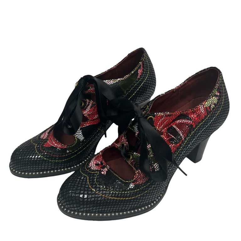 LAURA VITA FRANCE ALBANE 23 REFINED STYLE LACE UP SHOES.Black Diamond Cut Leather, Size 37, Black Rubber Sole, Heel Height 8Cm. Condition: Good - Refer To Images162942+1