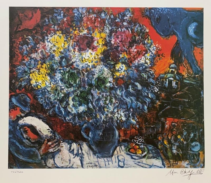 MARC CHAGALL (1887-1985)Limited Edition Colour Off Set LithographTitled: Bouquet De Fleur et AmantsEditioned: Edition of 300Image Size: 45cm x 55cmSheet Size: 60cm x 78cmSignature: Signature of Marc Chagall is printed as part of the LithographCondition: Excellent (New)Unframed.