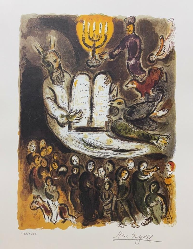 MARC CHAGALL (1887-1985)Limited Edition Colour Off Set LithographTitled: Exodus - TabletsEditioned: Edition of 300Sheet Size: 56cm x 43cmSignature: Signature of Marc Chagall is printed as part of the LithographCondition: Excellent (New)Unframed.