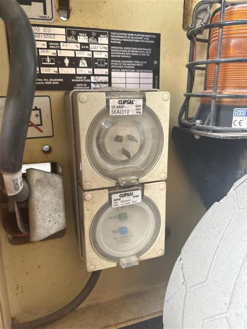 2007 JLG 2030ES Scissor Lift Date of Manufacture: 2007 Make: JLG Model Name & Number: 2030ES Configuration: Electric Max Platform Height : 6.1m Safe Working Load (kg): 230 kg Fuel Type: Electric Colour: Orange and cream Tyres: Solid tyres, fair condition Drive Type: 2WD V.I.N. / Serial Number: 1200015553 Hours Indicated: 139 hours GVW : 2,070kg Extras: 110V power outlet fitted to platform, beacon light Comments / Condition: JLG 2030ES electric scissor lift presenting in used condition with cosmetic wear consistent with age and use. Controls, wiring, batteries, tyres and safety decals present. Operational status and compliance certification not tested or verified. Suitable for mechanical inspection prior to bidding. Enquiries: Gage Mackay 0458 732 549 | [email protected]
