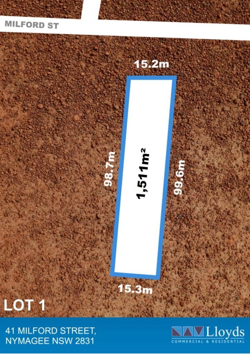 BUY NOW -BLOCK OF LAND - NSW Offers from $19,000 Milford Street Nymagee NSW Lot 1- 41 Nymagee is a small rural town located 100km south of Cobar in New South Wales and approximately 660 kilometers northwest of Sydney and 750 kilometers west of Brisbane. The Nymagee Pub is the heart of the town and a popular spot for both locals and tourists. This historic establishment has been serving as a meeting point and watering hole since the early 1900s. Nymagee has a strong mining history, with gold, copper, lead, zinc and silver mining being a significant part of its heritage. The surrounding Outback region offers numerous outdoor activities for adventure enthusiasts. Visitors can go camping, bushwalking, or birdwatching in the vast expanses of the Outback. Exploring the nearby national parks, such as the Gundabooka National Park or the Mount Grenfell Historic Site, allows for encounters with unique wildlife and ancient Aboriginal rock art. Nymagee is also home to "Clancy of the Overflow" a poem written by the famous bush poet Banjo Paterson. The sheep station, "The Overflow" featured in the poem is situated about 32 kilometres south east of Nymagee. Lot 1. 41 Milford Street Nymagee. Lot 15 DP4381. Land area 1,512m2 This is a great opportunity to secure a piece of rural New Sales Wales Agent-Gary 0419 980 212 Lloyds Auctions-1800 976 166
