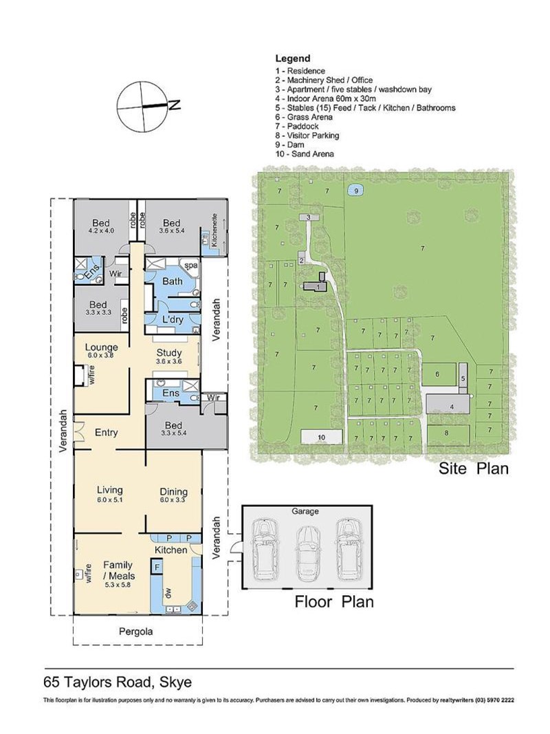 EXPRESSIONS OF INTEREST-PLEASE CONTACT AGENTEQUESTRIAN CENTRE - INDOOR ARENA - MORNINGTON PENINSULA 65 Taylors Road Skye VIC 4 Bedroom 3 Bathroom 3 Car parksLocated in the tranquil suburb of Skye, just 51 kilometers southeast of Melbourne's Central Business District and within the City of Frankston, this exceptional property presents a unique opportunity for equestrian enthusiasts or businesses seeking a versatile space.The Residence:• Secluded Location: Enjoy the peace and privacy of a secluded property off Taylors Road, with no passing traffic.• Spacious Home: A large solid brick home featuring two living areas plus an office, providing ample space for family living.• Comfort and Style: Cozy up by the open fireplace, and enjoy a kitchen that opens to a family room and patio, perfect for entertaining.• Bedrooms: Four well-appointed bedrooms, including two with ensuites and a main bathroom.• Storage Solutions: Additional storage areas and a three-car garage provide practicality.• Equine Access: Separate access from the equine area ensures convenience.Top Stables:• Five stables for optimal horse care.• Horse wash and tie-up area, along with a feed room.• Self-contained quarters for grooms/staff.Main Stables:• Fifteen stables with two horse wash bays and a tie-up area.• Three groom/staff rooms and a kitchen for convenient living.• Ladies' and men's toilets are available, with direct access to the indoor arena.Indoor Arena:• A spacious 60m x 30m sand arena, ideal for training and events.• Dedicated car park and horse float parking with separate access.Outdoor Arena:• A 60m x 20m sand outdoor arena complements the indoor facilities.Horse Paddocks:• Nineteen yards with shelters, six-day yards, and two large paddocks provide excellent grazing and shelter for horses.Location Highlights:Carrum Downs: 5 kmCentenary Golf Course: 6 kmSeaford Beach: 9 kmFrankston: 11 kmMornington Peninsula: 25 kmMelbourne CBD: 51 kmPortsea: 62 kmMelbourne Airport: 81 kmThis first-class equestrian centre is just an hour's drive from Melbourne's CBD. In addition to its use as an equestrian facility, the property holds potential for various commercial, manufacturing, mechanical, construction, or agricultural purposes.Inspections by Appointment.Agent-Gary 0419 980 212Lloyds Auctions-1800 976 166