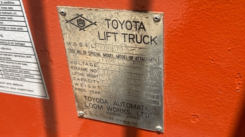 UNRESERVED Toyota Electric Forklift – Model FBRE13