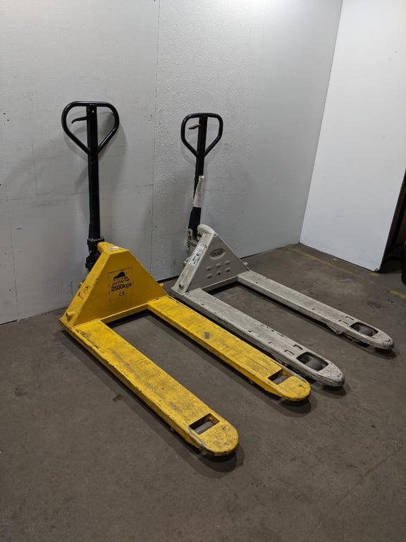 Lot of 2x Manual Pallet Jacks - Crown (2300kg) & Beaver (2500kg)Note: Used condition, signs of abrasions & scuffingSold as lot
