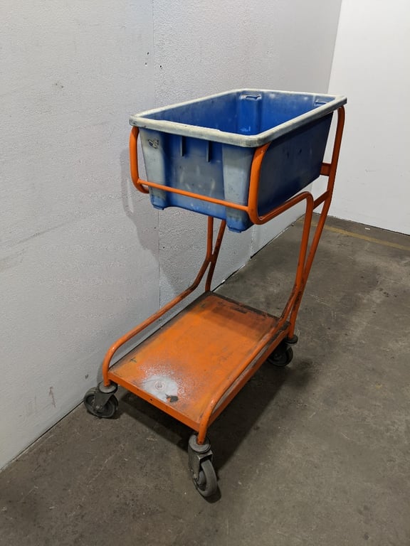 Tub Cart, Orange, Steel, 1x TubDimensions (HxWxD): 104 x 42 x 85cmNote: Used condition, signs of wear, surface dust & scuffing