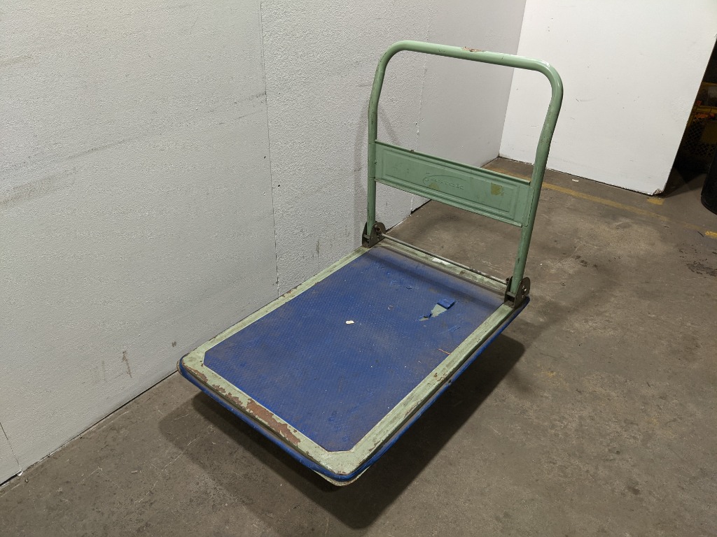Heavy-Duty Flatbed Trolley Cart – Steel Frame, Blue Platform, Rolling WheelsDimensions (HxWxD): 68 x 90 x 61cmNote: Signs of wear & surface marks consistent with regular use