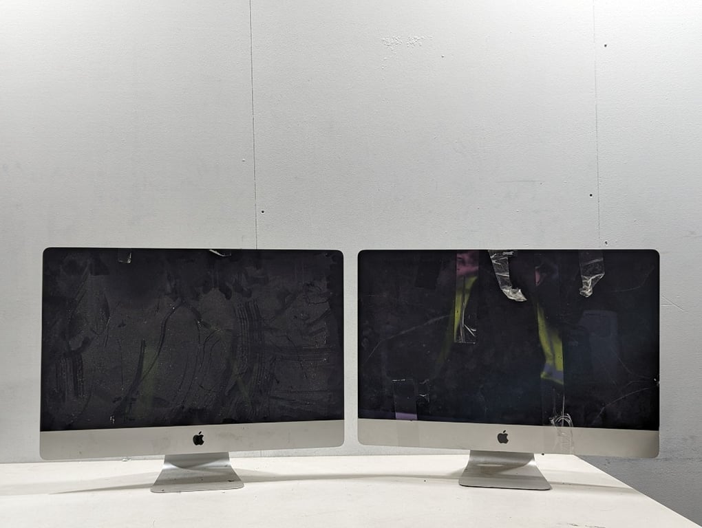 2x Apple Mac desktops. Note: one of the screen is cracked, refer to photos Bid as lot