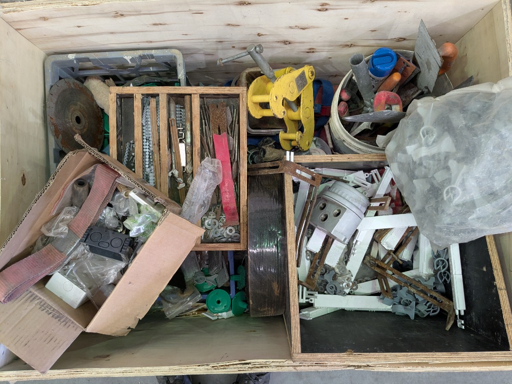 Assorted Formwork Accessories Including Spadesaws, Chairs, Trowels, Concrete Saw Blade, Fixings, Drill Bits, Rio Accessories & More, Onsite Inspection Recommended, Refer To Images, Quantity to Box,Sold as Lot