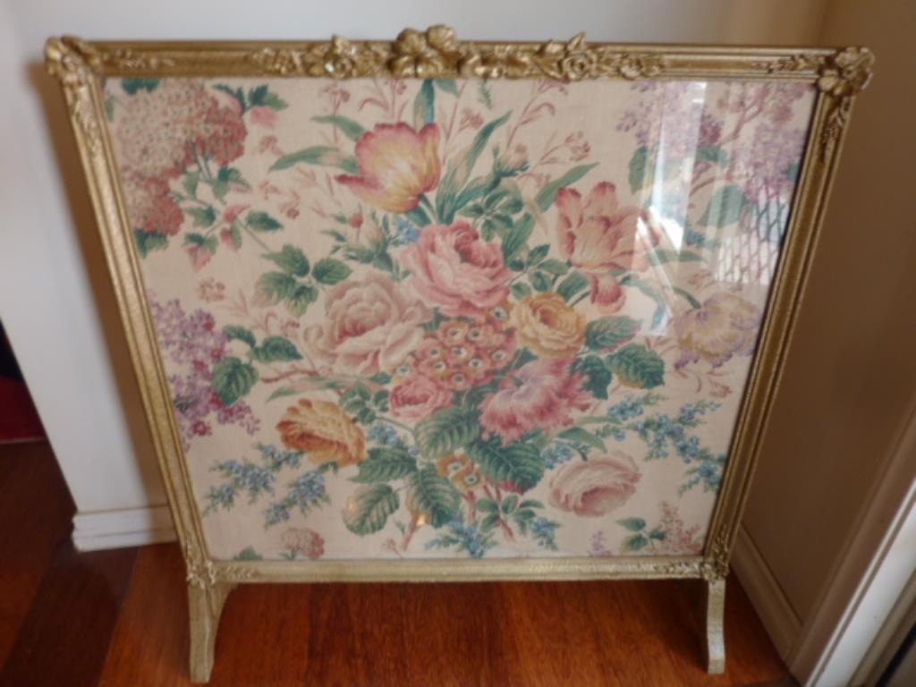 Fireplace.Vintage decorative screen with glass front. Approx size 72cms wide x 80cms high