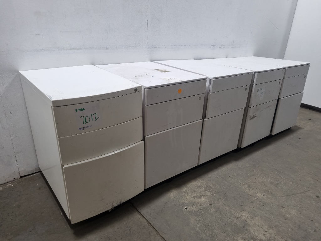 Filing Cabinet, Steel, Three Tiers, WhiteDims: 63 × 42 × 55cmNote: Signs of wear & structural damagesSold as lot