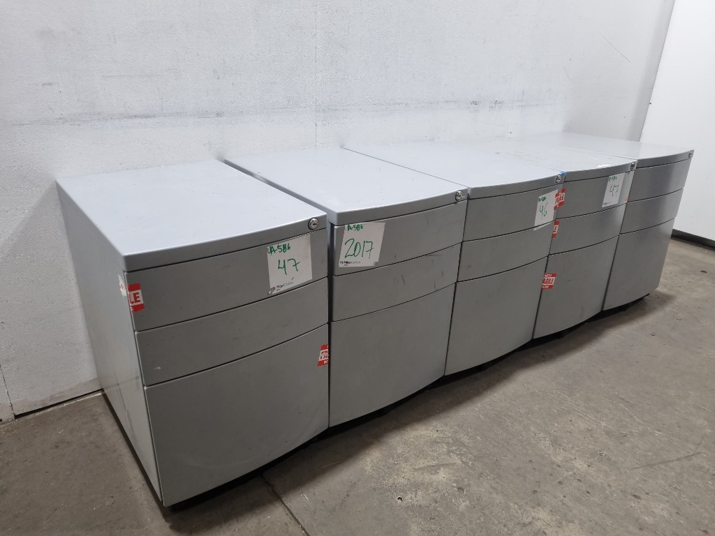 Filing Cabinet, Steel, Three Tiers, GreyDims: 63 × 42 × 55cmNote: Signs of wear & abrasions, refer to photosSold as lot