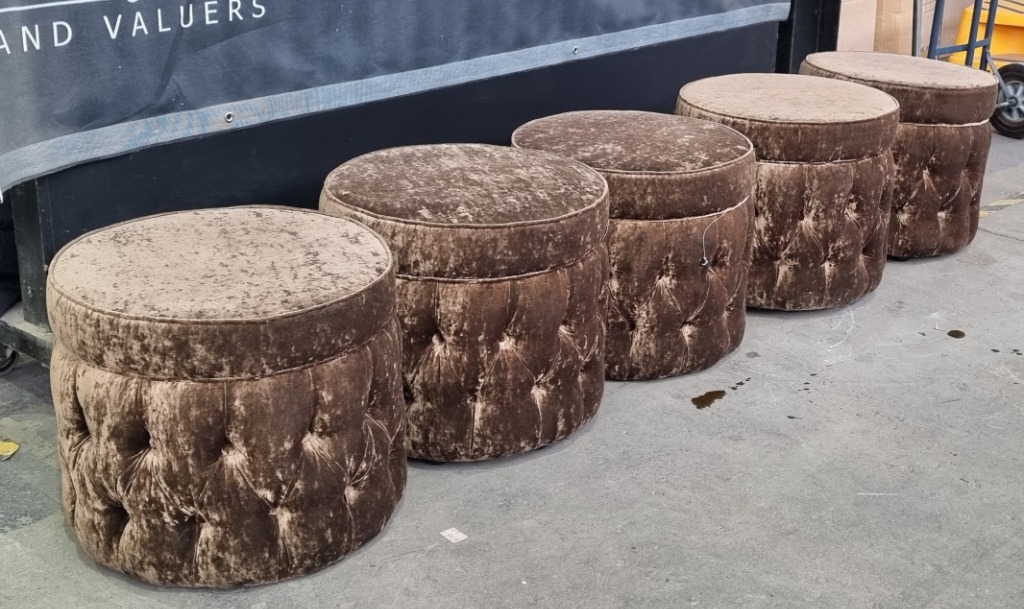 Ottomans, 5x Tufted Velvet style OttomansSold as lotSold as lot