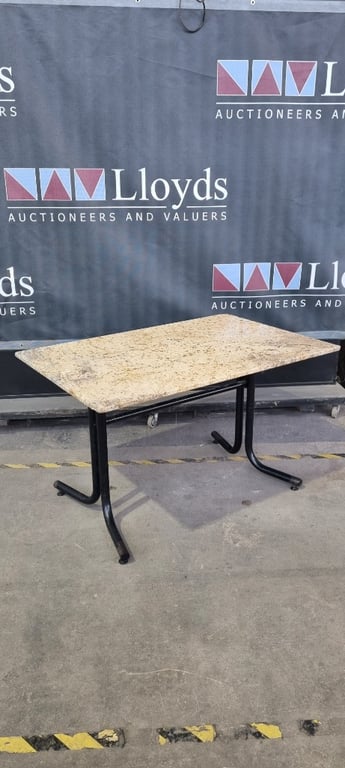 Tables, Granite/Marble Style Tables, 80cm W, 120cm L, 73cm HNote: Some Corners, Damaged, 1 Foot MissingSold as lot