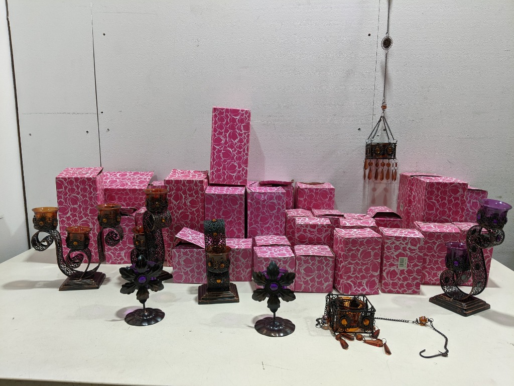 Assorted decorative candelabras, includes three tier candle, two tier candle, includes metal glass hanging tea light candle holder and more...