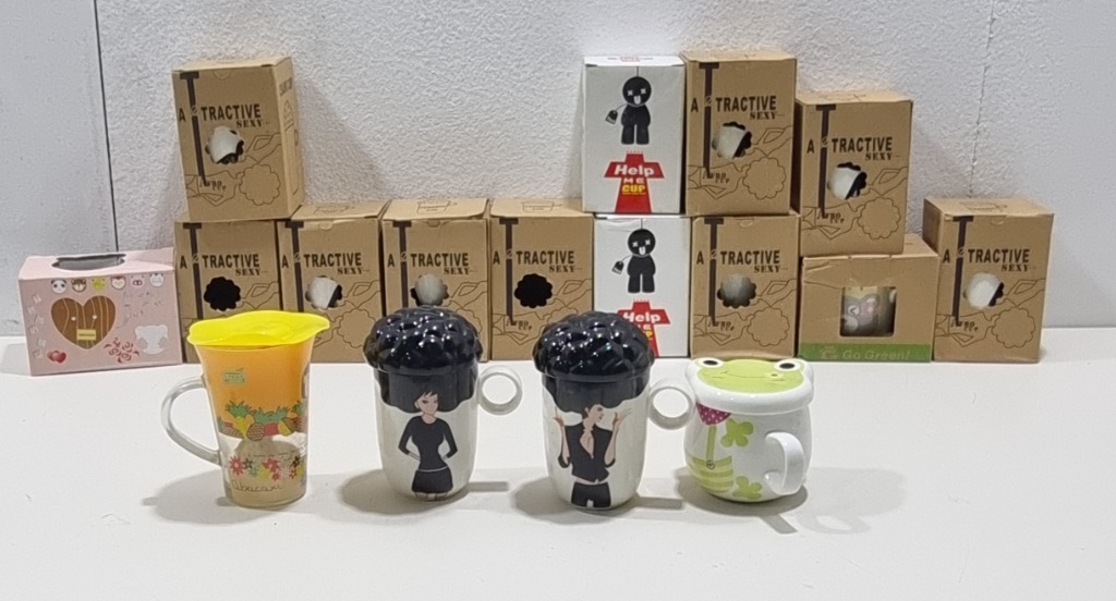 Assorted Novelty cups, includes afro mugs,tea cups and more..... Sold as lotNote: cups may vary and have missing pieces.