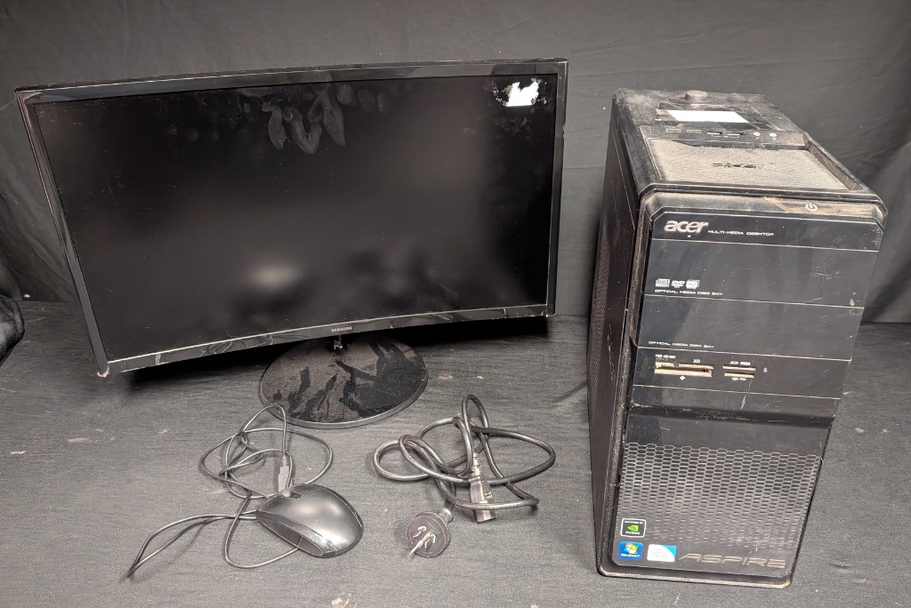 Desk Top Set up Including Acer Aspire M1800 Inter Cleron E3200, 500GB HDD, 2GB RAM - With Power Cord Samsung 24" S36C Curved Monitor Mouse