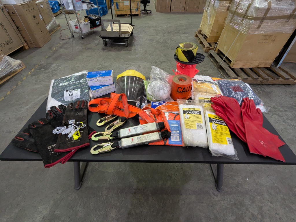 Assorted Safety PPE, Equipment & Accessories, Including Fall Arrestor Lanyards, ( In Date ), Face Shield, Welding Gloves, Acid Proof Gloves, Disposable Overalls and More Sold as Lot