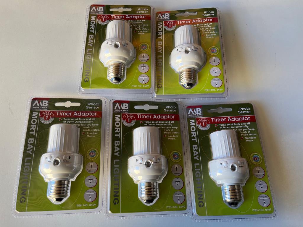 Case of 6 X Dusk till Dawn Socket Timers, Edisson Screw, 3 modes, Normal switch on off, On at Dusk - Off at Dawn timer, plus holiday random mode SOLD AS 1 LOT