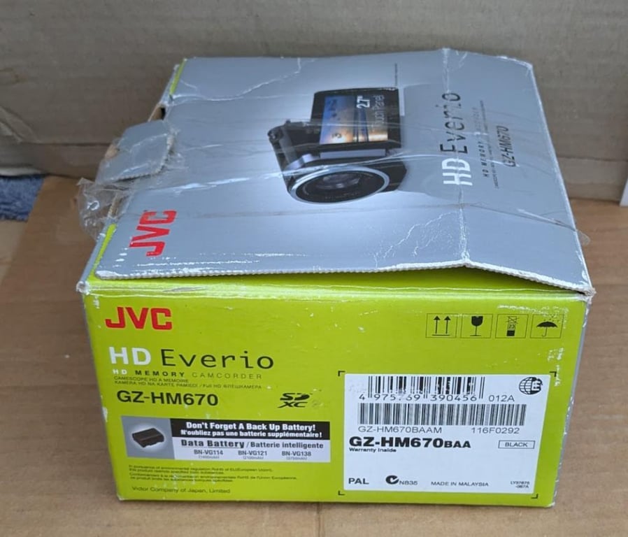 JVC video camcorder HD Everio model GZ-HM670 to box