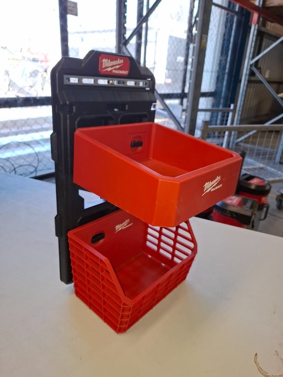 Milwaukee hard plastic wall mount with two storage compartment, 9 kg capacity each, Red hard plastic