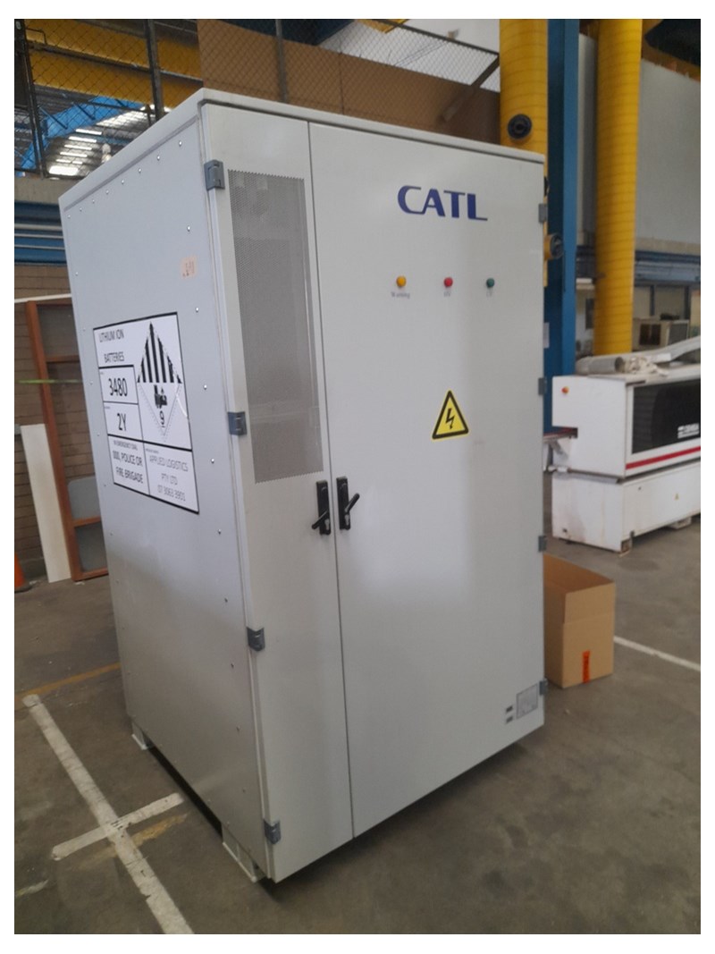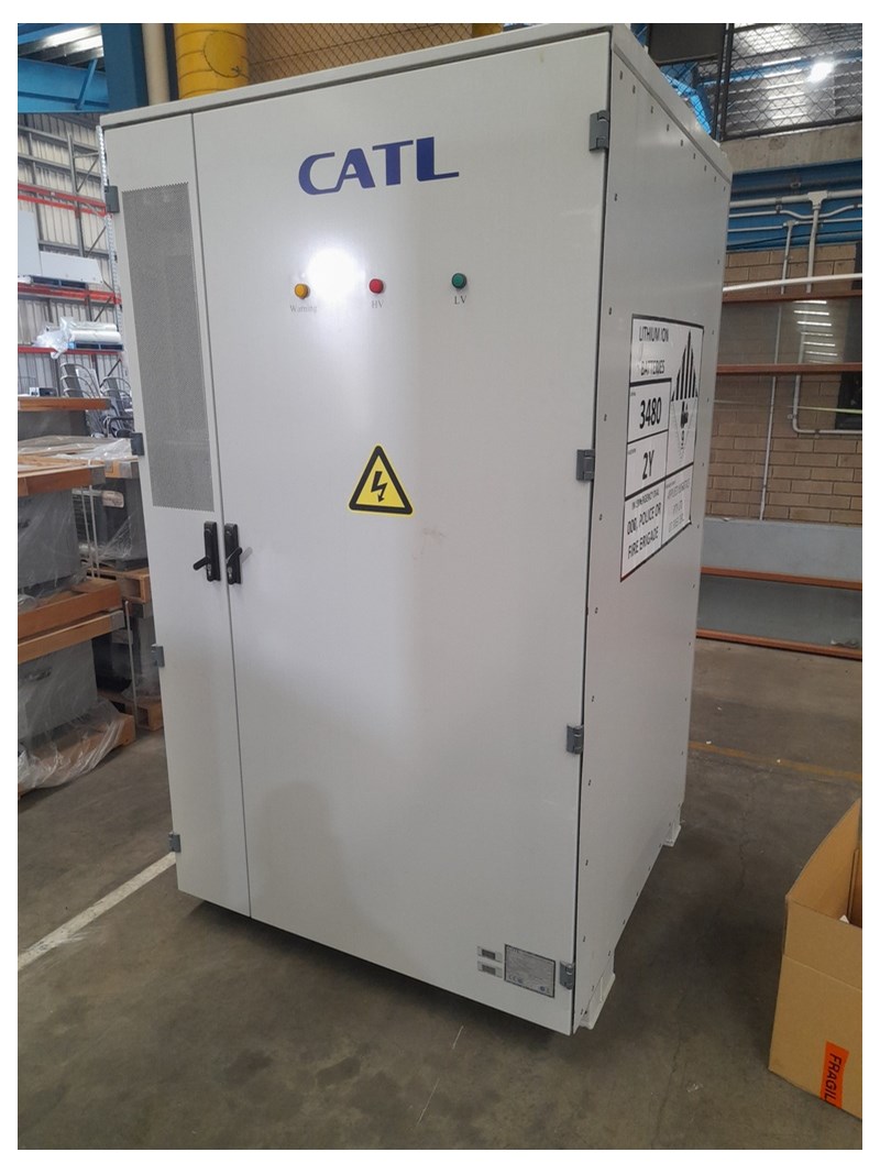 2022 233kWh CATL Liquid Cooled Rechargeable Li-ion Battery Pack Suitable for Small to Medium Commercial and Micro Grid Solutions Specifications: Type: 0552280-P Lithium Iron Phosphate No: 001PBYSN000007C6K0200002 Maximum DC Continuous Current: 280A DC Maximum DC Continuous Power: 232kW Maximum Short Circuit Current/Duration: 12.2kA dc/300us Nominal AC Voltage/Frequency: (187-253) aV ac/(50/60)Hz Maximum AC Continuous Current: 30 A ac/1Aac Rated Capacity: 280Ah Nominal DC Voltage: 832V Protective Class: 1 IP Code: IP 66 (Battery room) Approximate Dimensions: 1300mm x 1300mm x 2300mm Weight: 2500kg