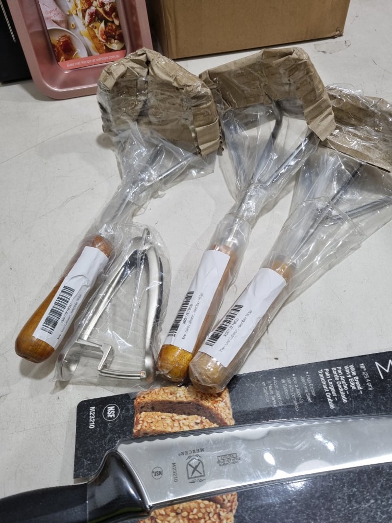Assorted kitchenwarw products,includes Wiltshire loaf pan, millennia 10" bread knife and more......