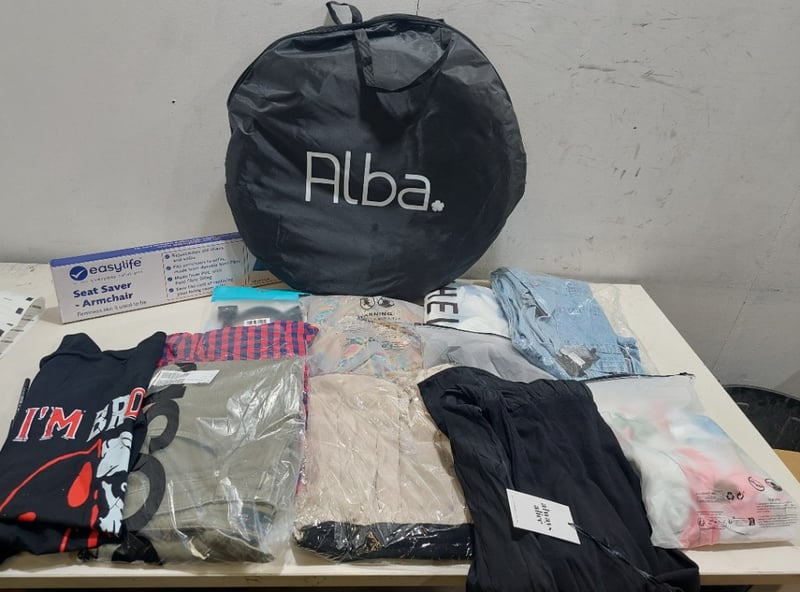 Assorted clothing in assorted sizes and more.Sold as a lot.