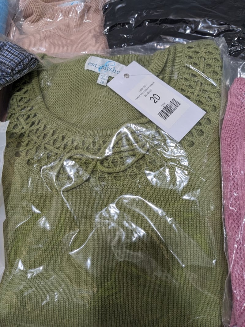 Lot of winter woman clothes includes, sweater, T-shirt and more.. Sold as a lot.
