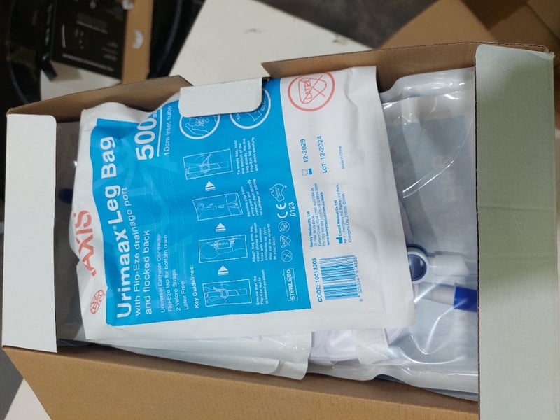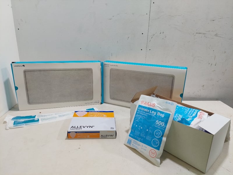 Assorted items, including a latex-free, sterile drainage bag featuring 10 cm tubing, 2 way foley catheter and more.Sold as a lot.