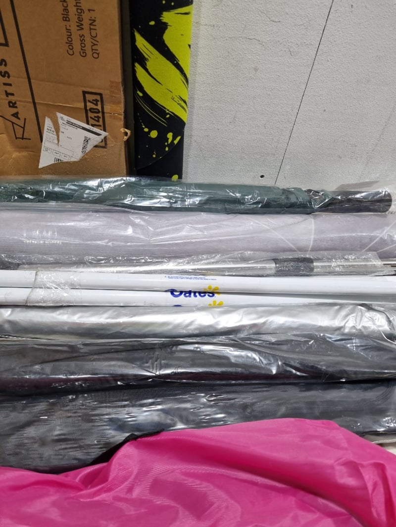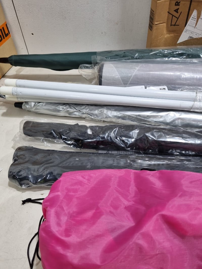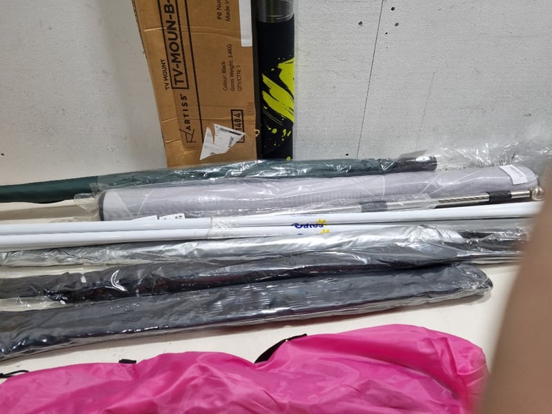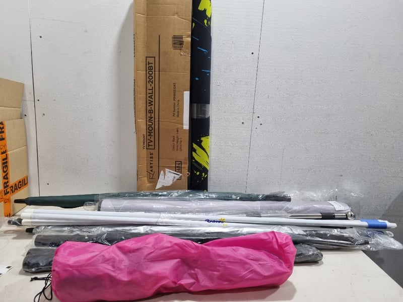 Assorted homeware lot l, includes umbrellas, TV mount and more....... Sold as lot