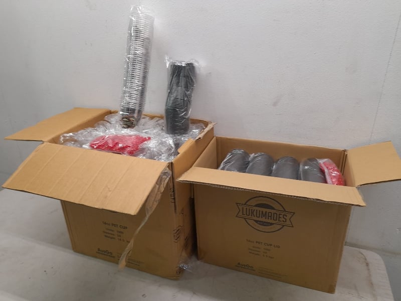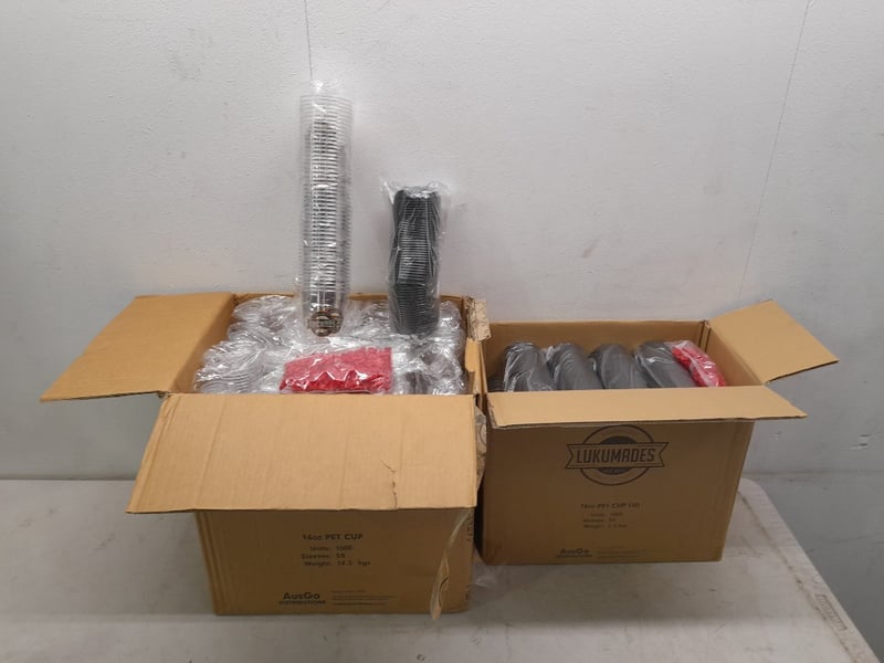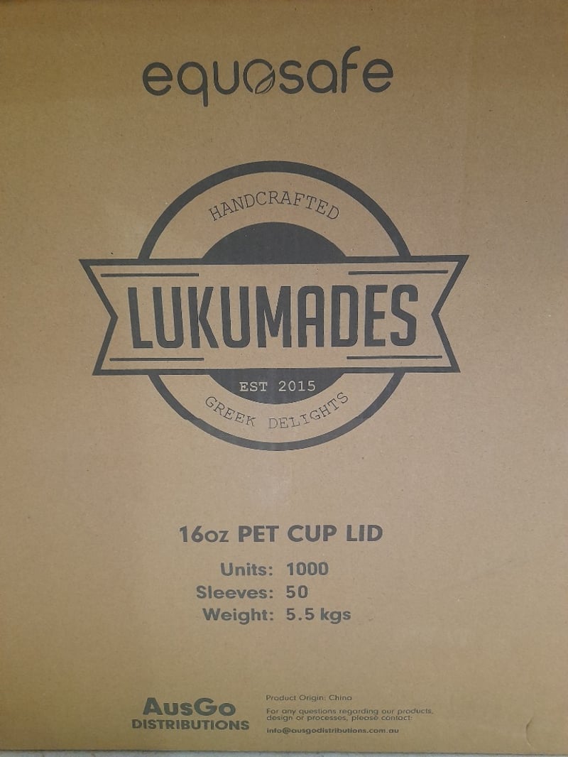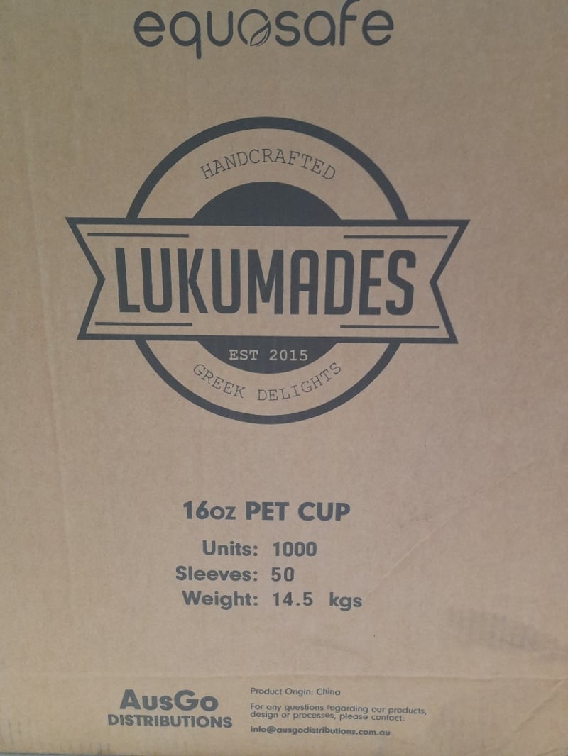 Plastic cups & lids, Lukumades, 16oz pet cup qty 1000, 16oz pet cup lid qty 1000