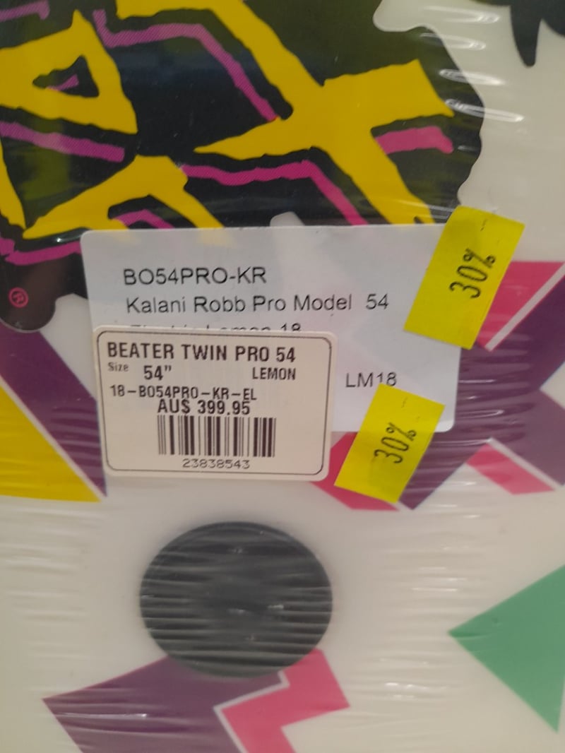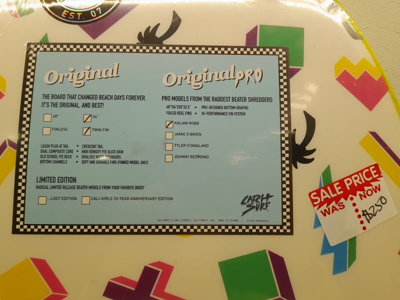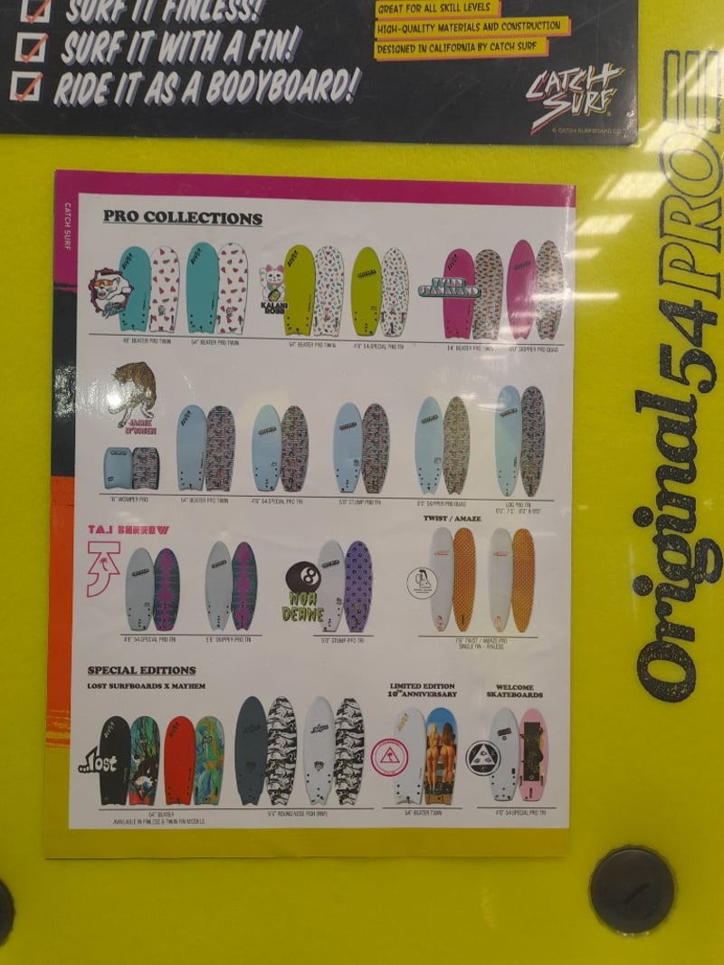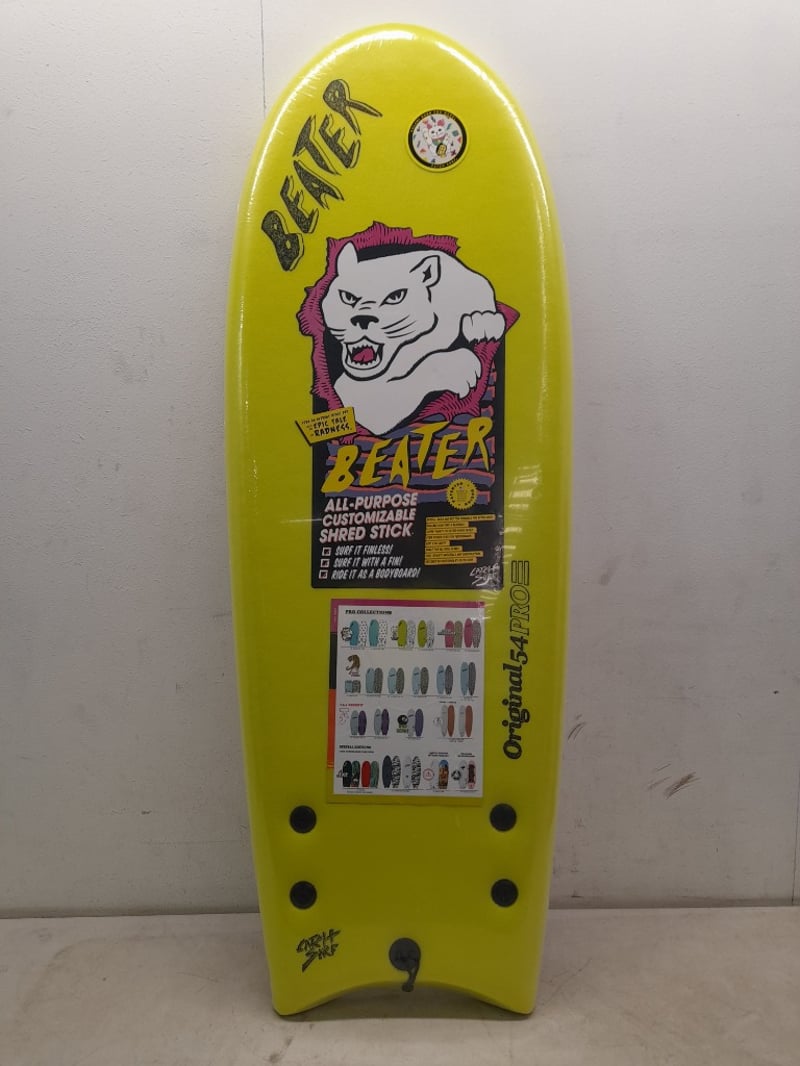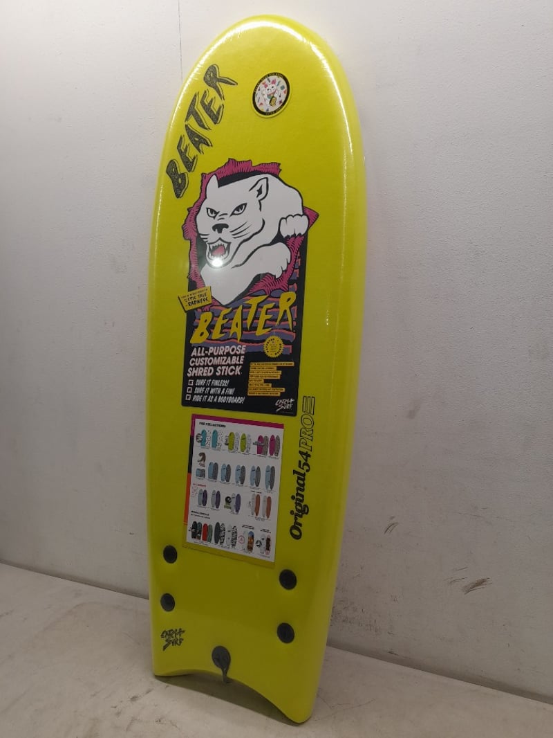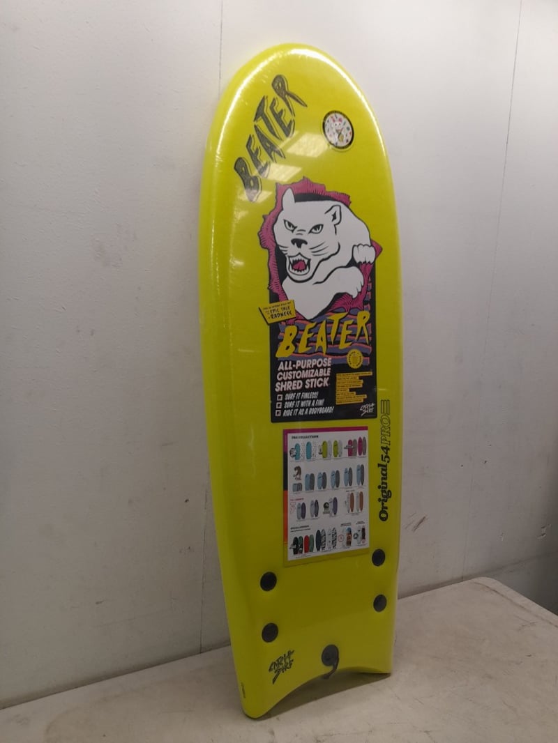 Surfboard, beater, original 54 pro, twin fin, yellow