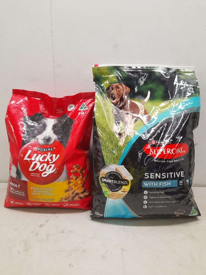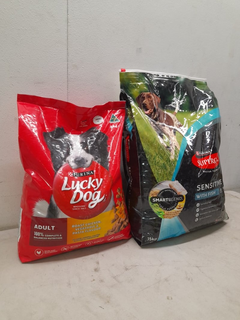 Dog food, Purina, Lucky Dog & Super Coat, 8kg/15kgSold as lot