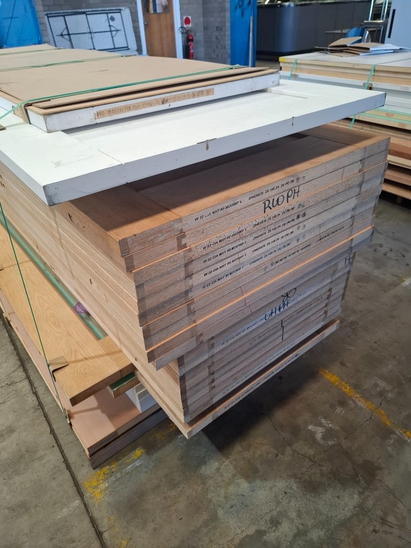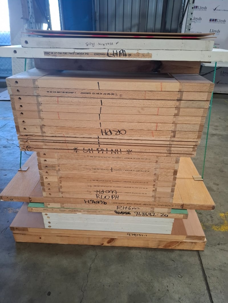 Assorted doors, timber, sizes from 2400mm x 1200mm x 40mm - 2340 x 770 x 35mm