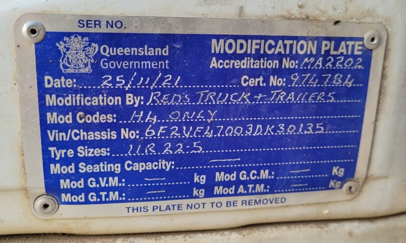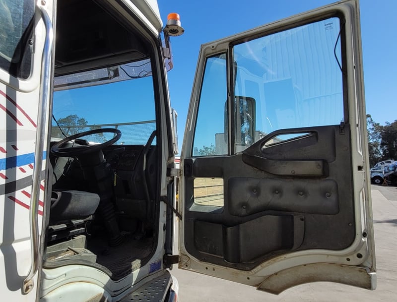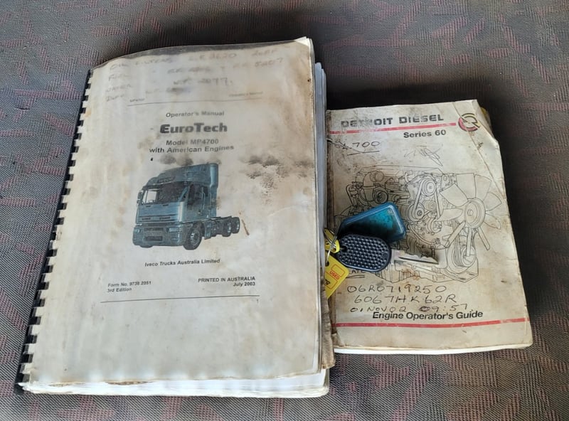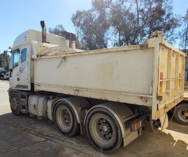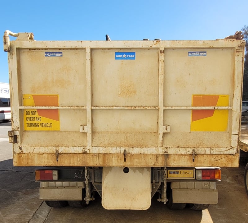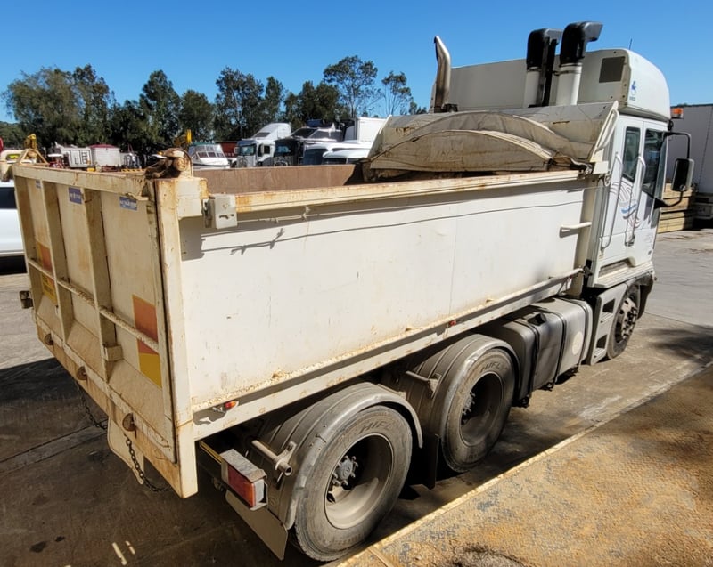 Description/extras: Power windows, Towbar, Owners manual, sleeper cab, Detroit diesel series 60 engine, safety beacon lights, windscreen stone guard, tipper tray cover, passenger side storage compartment, UHF radio, split shift manual transmission