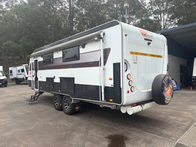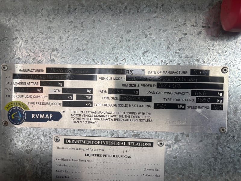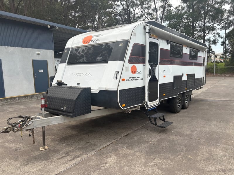 **2018 NOVA PRIDE PLATINUM CARAVAN 22-17F Year: 2018 Make: Nova Caravans Model: 226-17F5 Pride Platinum Body: Caravan Length: 7.5m, 9.35 from tow ball to rear, 2.9m H Colour: White Configuration: Dual Axel VIN: 6T9T21V86H05YP240 GTM: 3450kg Tare: 3097kg ATM: 3753 Description/ extras: Top-of-the-line Nova caravan, fully equipped for off-grid comfort and built tough for Aussie conditions! Featuring Nova’s premium construction with fibreglass walls, 6" chassis, and independent suspension. Inside you’ll find a plush bed with two single massage mattress, full ensuite, spacious kitchen, and stylish living area—perfect for couples seeking touring luxury. Solar, batteries, 2000w inverter, A/C, external storage, and more included. Off-road ready with ALKO suspension . Full ensuite + two Adjusta Australia mattresses, Slide-out lounge, Solar, dual batteries & 2000w inverter . One-owner, well-maintained #MMR