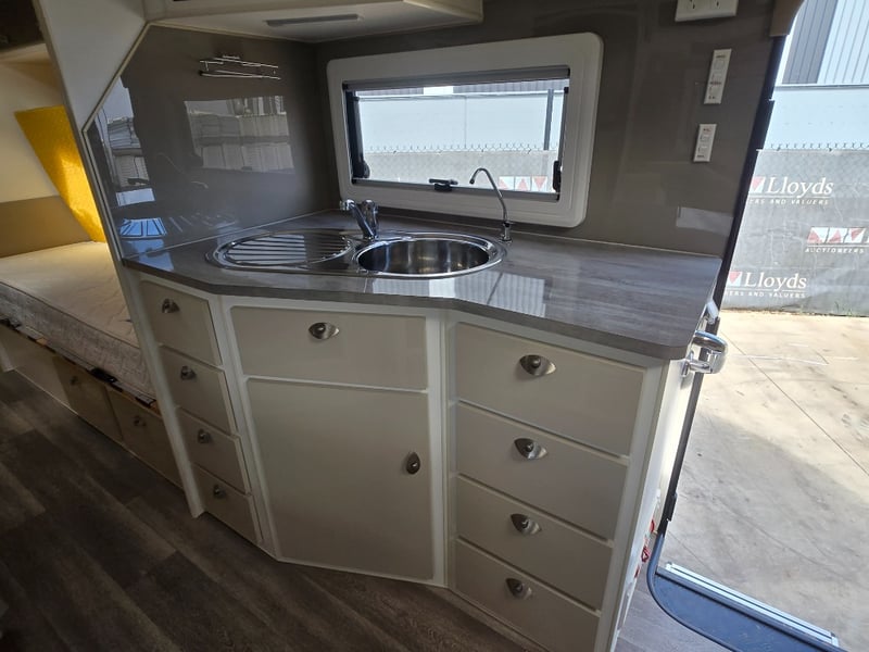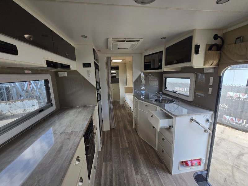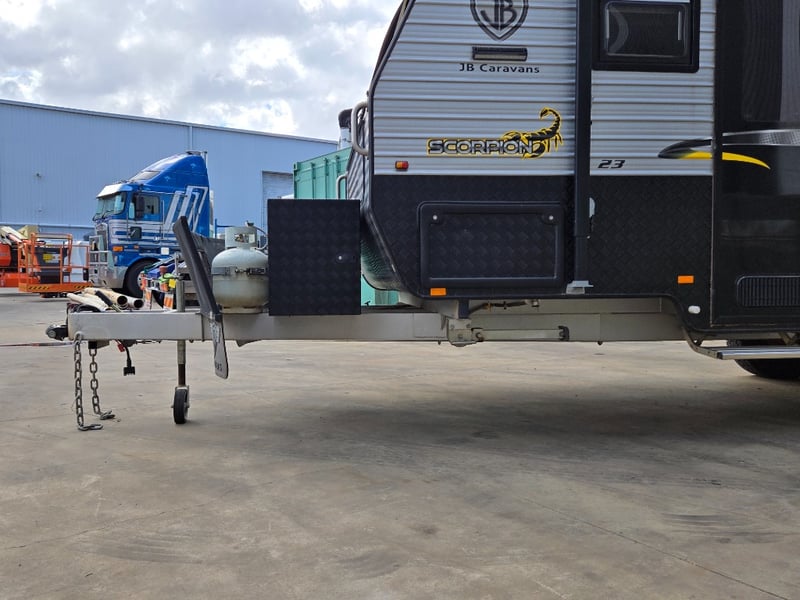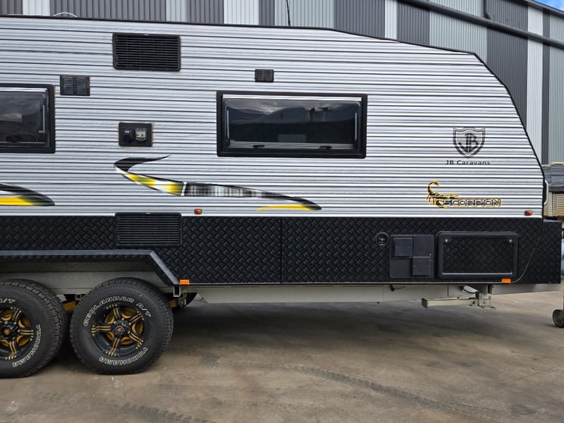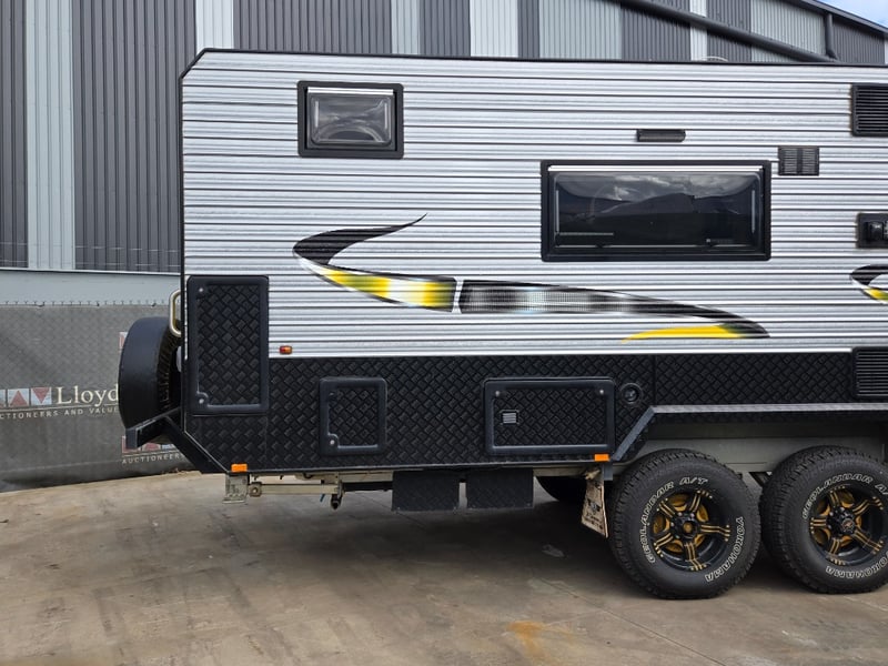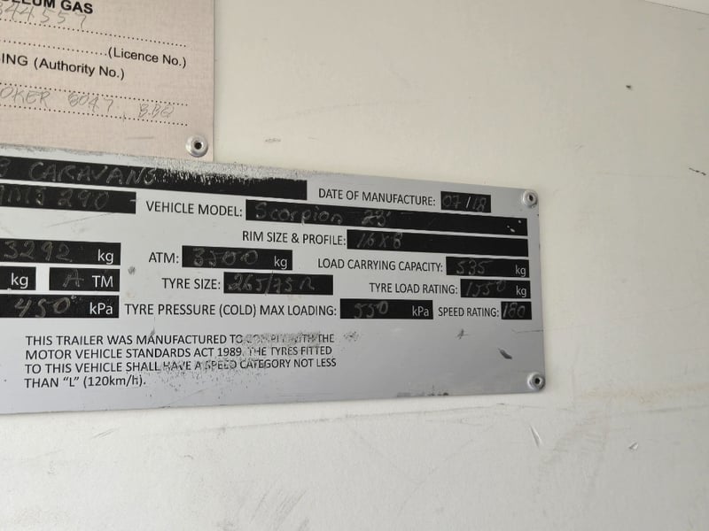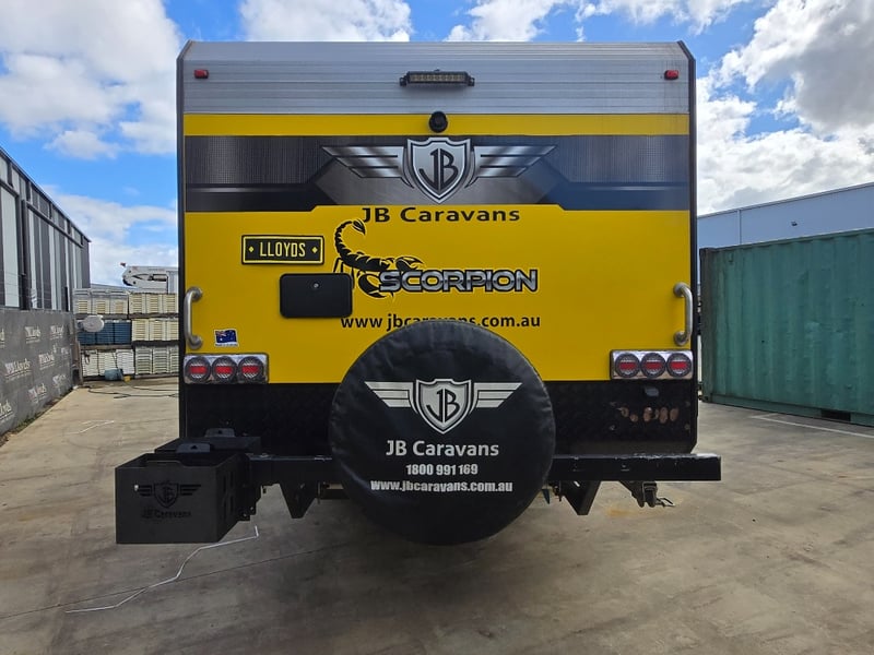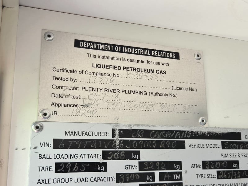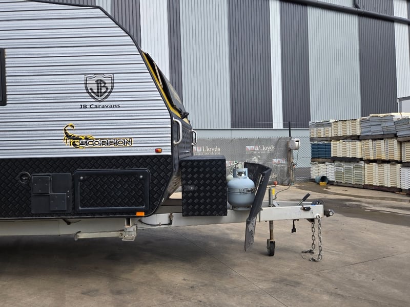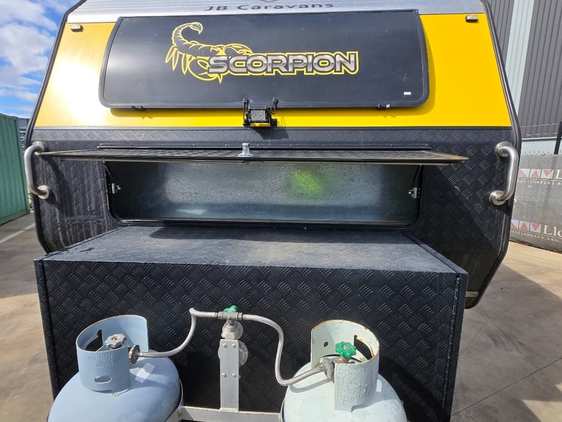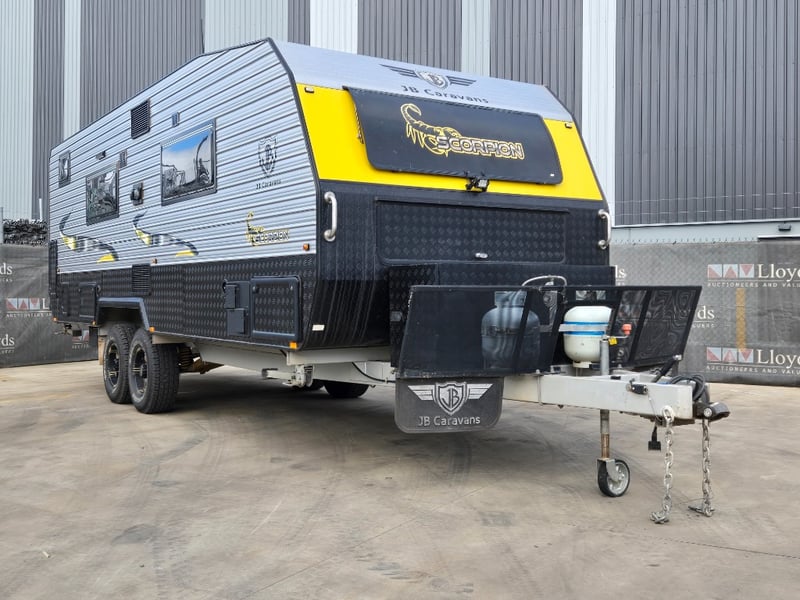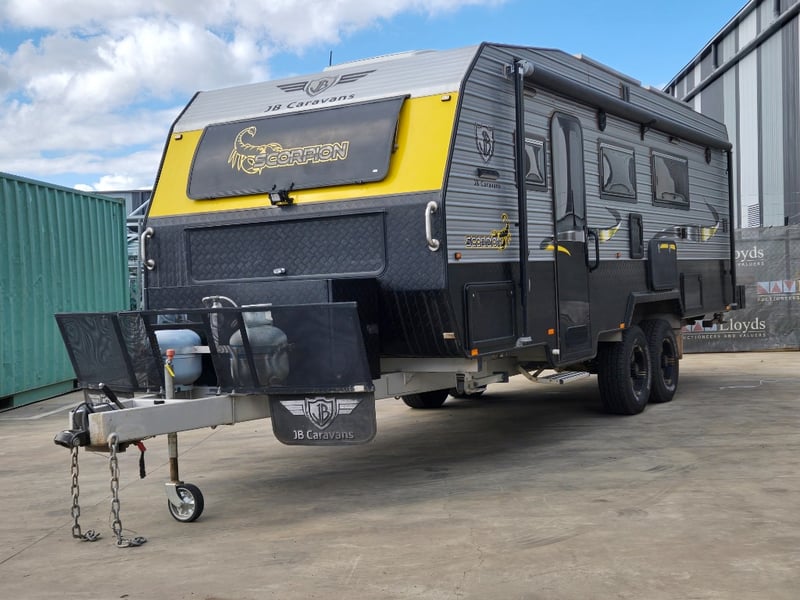 **2018 JB Scorpion Sting Caravan Year: 2018 Make: JB Caravans Model: scorpion sting 23 Body: Caravan Colour: Grey/Black Configuration: Dual Axel Tare: 2965 kg GTM: 3292: kg Description/ extras: Fridge, microwave, seating area, X2 Single bed, stove, oven, toilet, shower, sinks, washing machine, lights, power points VIN: 6T9T21V86J09MS290 Key #B39 Lloyds stock #990548+1 #Ajax #MMR