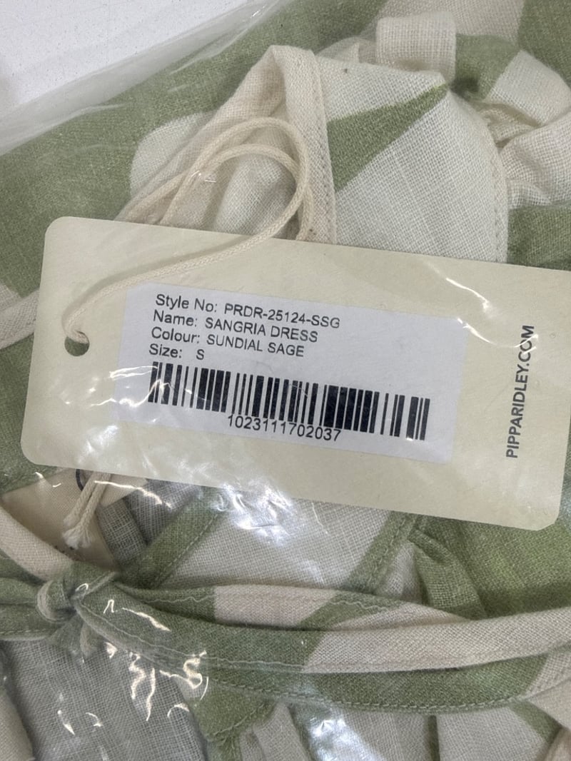 RRP: $279, Sangria Dress, Pippa Ridley, Size: S, Colour: Sundial Sage