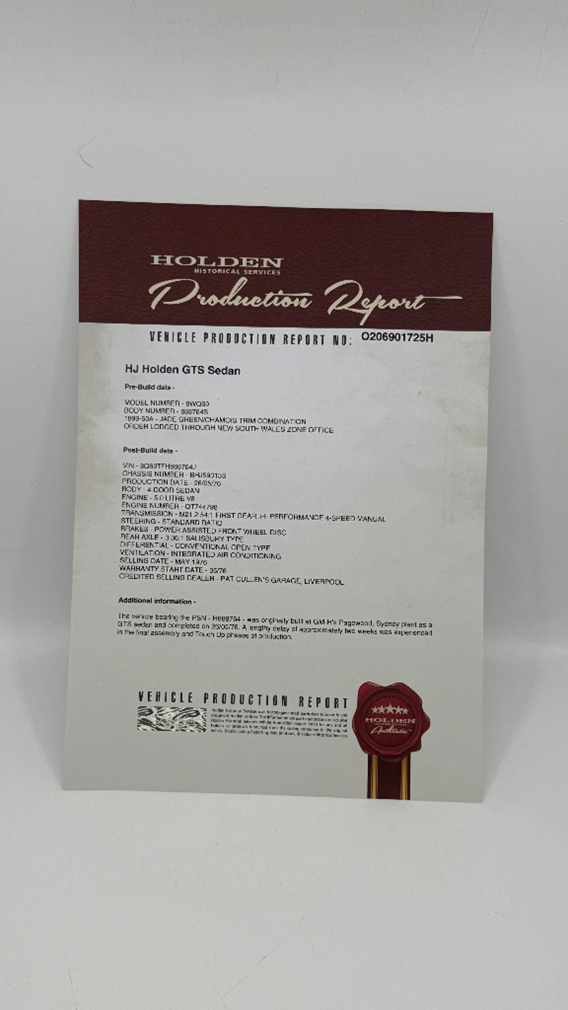 A rare and verified genuine HJ Monaro GTS — an essential addition for serious Holden collectors and Australian muscle car enthusiasts alike.