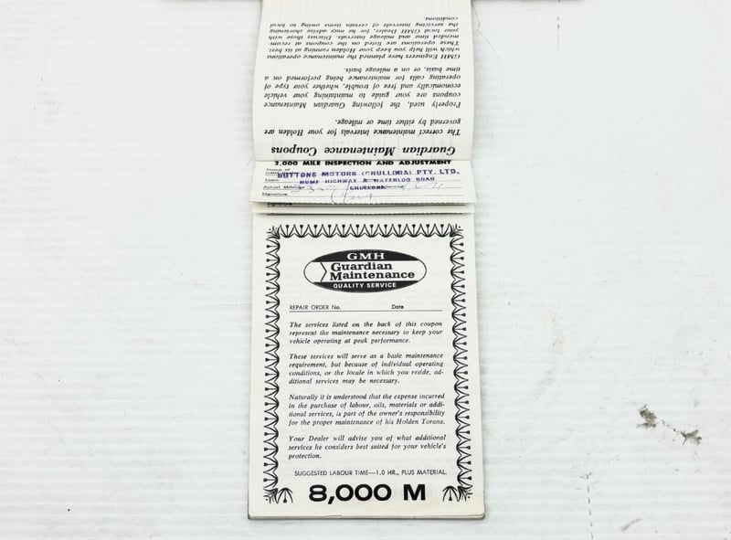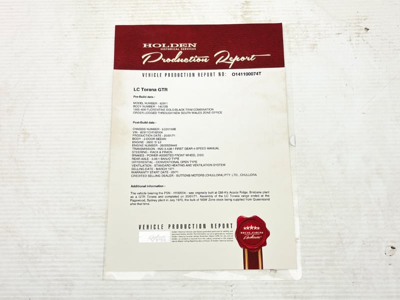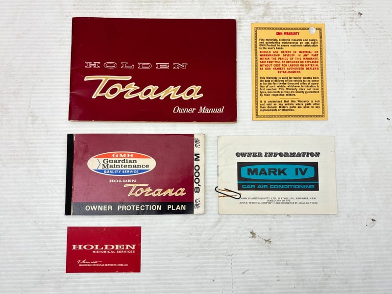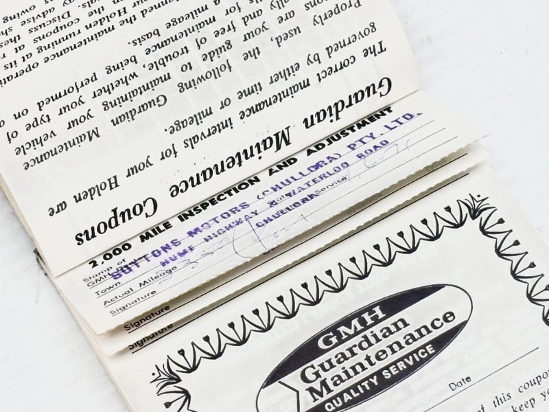 Verification: Holden Production Report, Original GMH Service Book, Original Certificate of Registration, Logbooks, Owners Manual