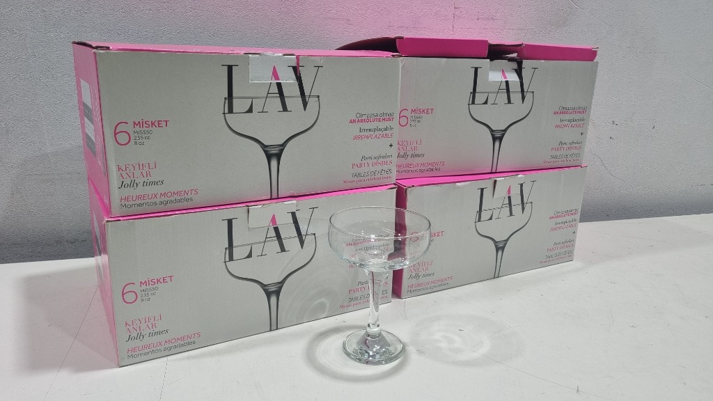 Cocktail Glasses, new in box, 6 per box, total quantity 4 x boxes