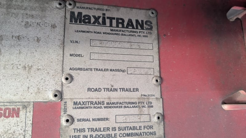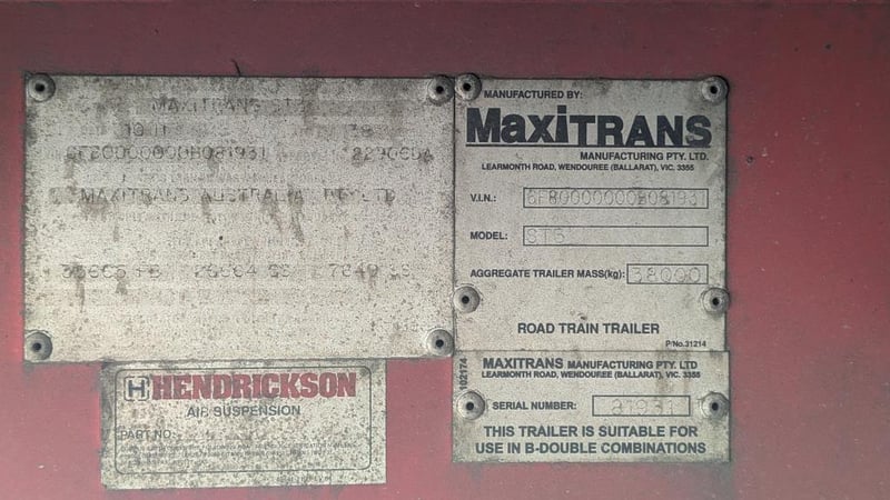 2011 Maxitrans ST3 Curtainsider A Trailer Year: 2011 Make: Maxitrans Model: ST3 Body: Curtainsider A Trailer ATM: 38,000 kg Suspension: AIrbag Dimensions: 11.4m L x 2.5m W x 4.30m H Description: 12 Pallet Curtain side A trailer, Hendrickson air suspension, VIN: 6F80000000B081931
