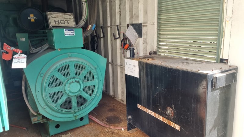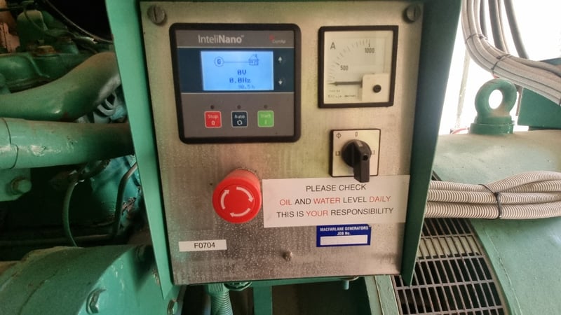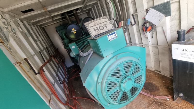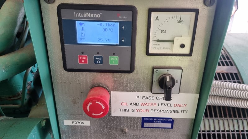 Cummins Twin Turbo Diesel Motor, McColl 415v Generator, Digital Control Panel, 450L Diesel Fuel Tank, Wired In Battery Charger, Roof Has an Extension Shroud Fitted,