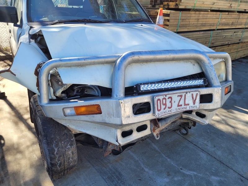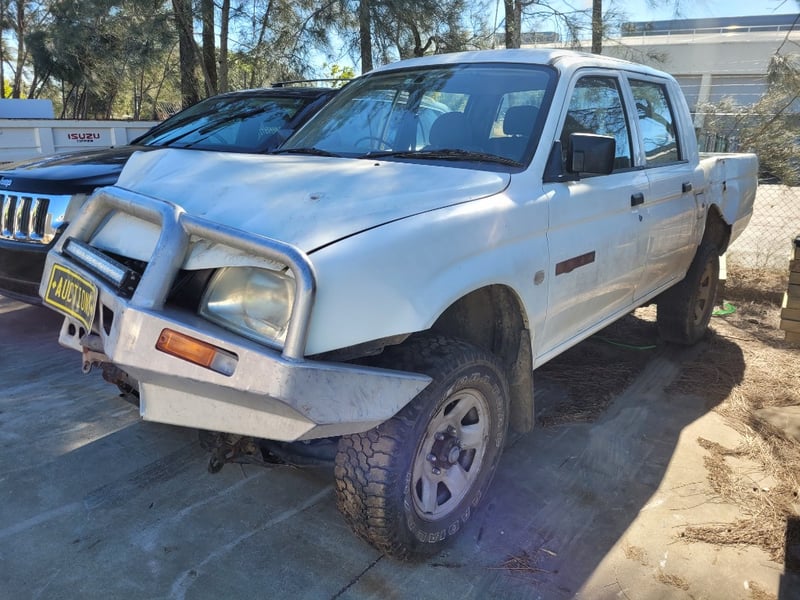 2004 Mitsubishi Triton MK GLX Year: 2004 Make: Mitsubishi Model: Triton Series: MK Badge: GLX Body: Dual Cab Utility Drive Type: Four wheel drive Odometer: Indicating 244,739 Kilometers Engine: 3.0 V6 Petrol Transmission: 5-Speed Manual Colour: White Seats: 2 Description/extras: Towbar, CD player, Log books/Owners manual. Canvas seat covers, spare wheel, LED light bar. Vehicle has been in accident, no keys, unknown running condition,. VIN can’t be seen due to crash damage without causing further damage. VIN: MMBJNK7605D002328 (AS PER PAPERWORK) ENG No: 6G72RM6379 (Key #No Key - Acacia Ridge, QLD) Lloyds stock #997829+1