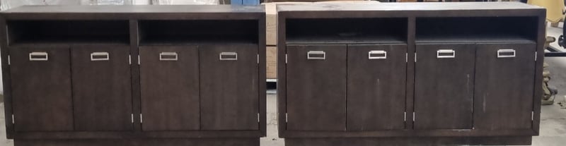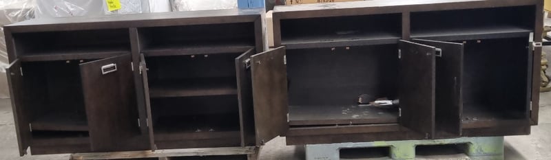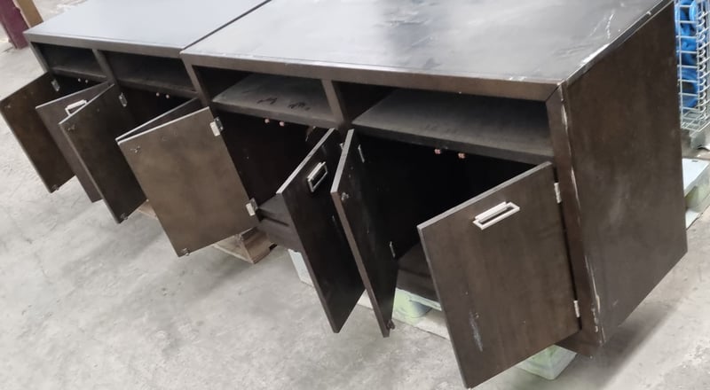 Pair of Dark Brown Cabinets. 4 door & 2 spacious cupboard holes 160x80x110cm DamagesSOLD AS LOT